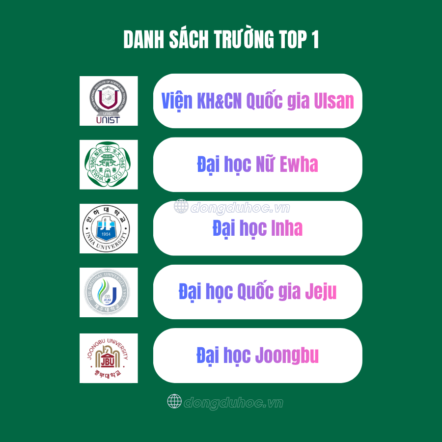 TRƯỜNG TOP 1% HÀN QUỐC 2026 (Cập nhật mới nhất)